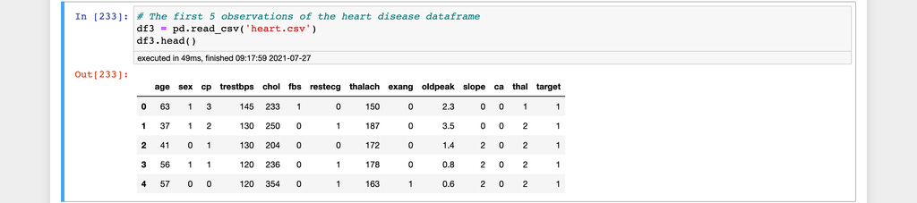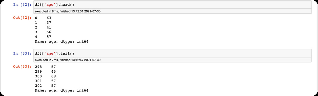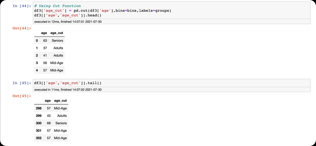 Here, we use the age column in the heart disease dataset to demonstrate the Pandas cut function.