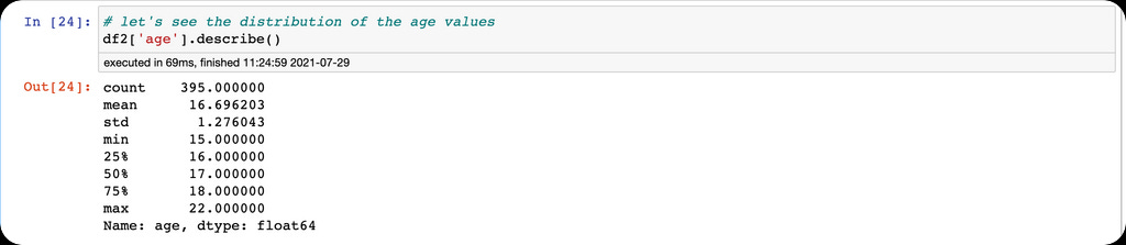 Let's look at the age column in the student's dataset to perform the discretization technique.